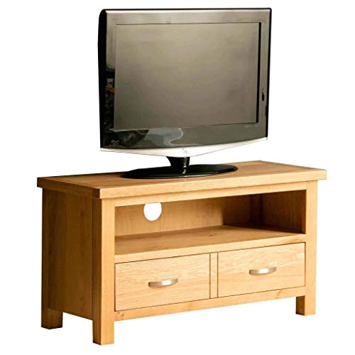 Hallowood Furniture Waverly Oak Corner TV Unit with 2 Drawers and Shelf, Solid Wooden TV Stand Cabinet for Media Storage and Consoles, Compact Light Oak Living Room Furniture