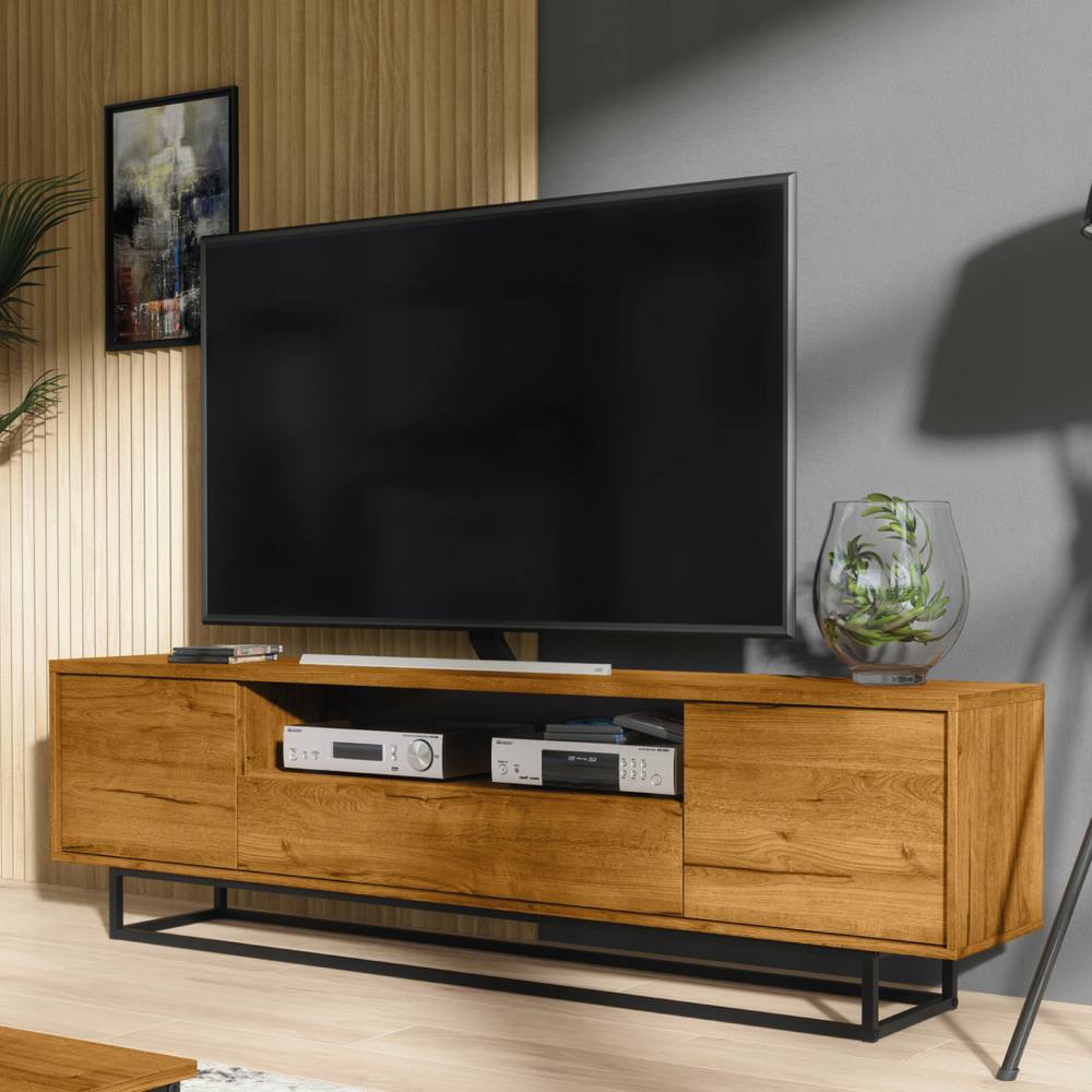 Creative Furniture Rift Loft TV Unit 200cm – Industrial-Style Storage with Rustic, Oak & Black Matt Doors in Light Oak