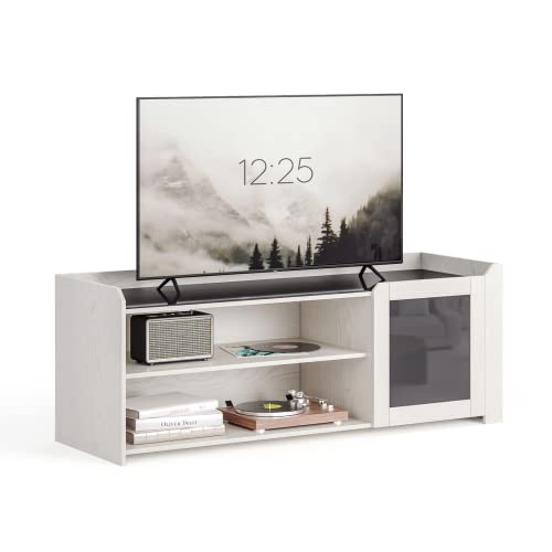 Meerveil TV Unit 120 cm, TV Stand Cabinet with 2 Open Compartments and 1 Door, up to 55 Inch for Living Room Bedroom, Light Oak