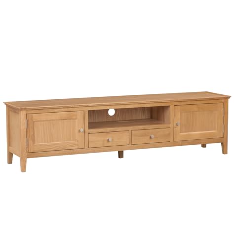 Hallowood Furniture Hereford Oak Long TV Unit, Wooden TV Stand Cabinet with 2 Drawers and Cupboards, Large Light Oak Media Unit Storage, Bedroom or Living Room Furniture