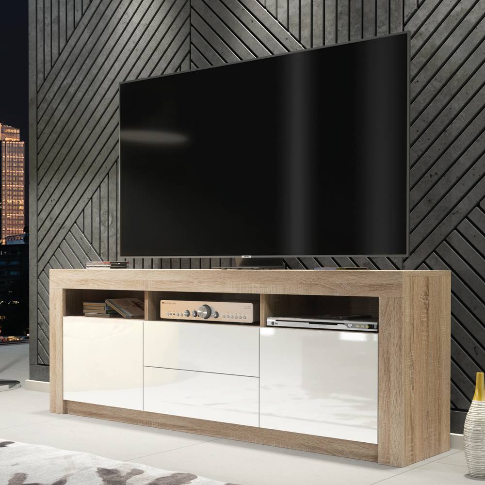 Creative Furniture TV Unit 145cm Modern - Oak with High Gloss White Doors in Light Oak