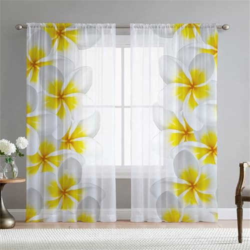 Odot Voile Net Curtains for Windows,3D Flower Pattern Semi Transparent Curtain Rod Pocket Semi Sheer Curtains 2 Panels Light Filtering Tulle Window Curtain for Bedroom (108x215cm,Plumeria)
