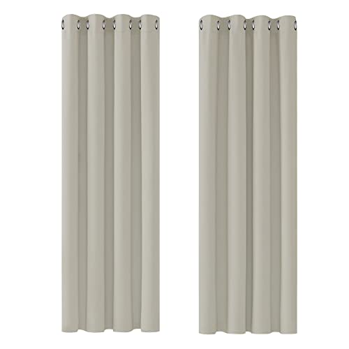 Deconovo Super Soft Solid Thermal Insulated Room Darkening Curtains Eyelet Curtains for Kitchen 140x180cm Light Beige 2 Panels