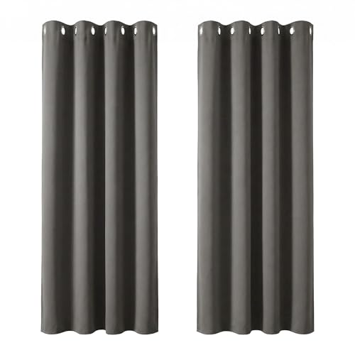 Deconovo Wide Grey Curtains for Living Room Thermal Insulated 66 x 72 Inch Eyelet Blackout Curtains Energy Saving Drapes Light Grey 2 Panels