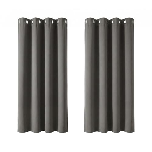 Deconovo Blackout Curtains for Living Room Thermal Insulated Eyelet Curtains 46 x 72 Inch Light Grey 2 Panels