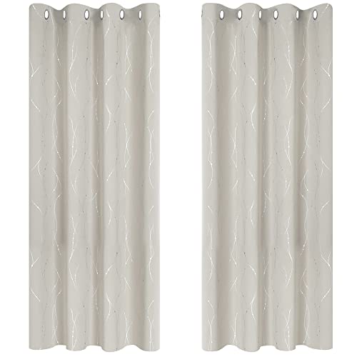 Deconovo Super Soft Dotted Line Foil Printed Thermal Insulated Blackout Curtains Window Treatment Eyelet Curtains for Livingroom 46 x 54 Inch Light Beige Two Panels