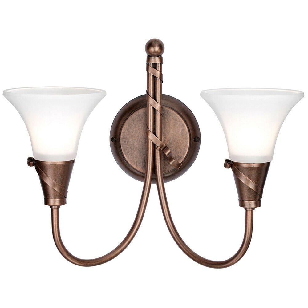 Twin Wall Light 1920's Style Glass Opaque Shades Brushed Bronze LED E14 60W