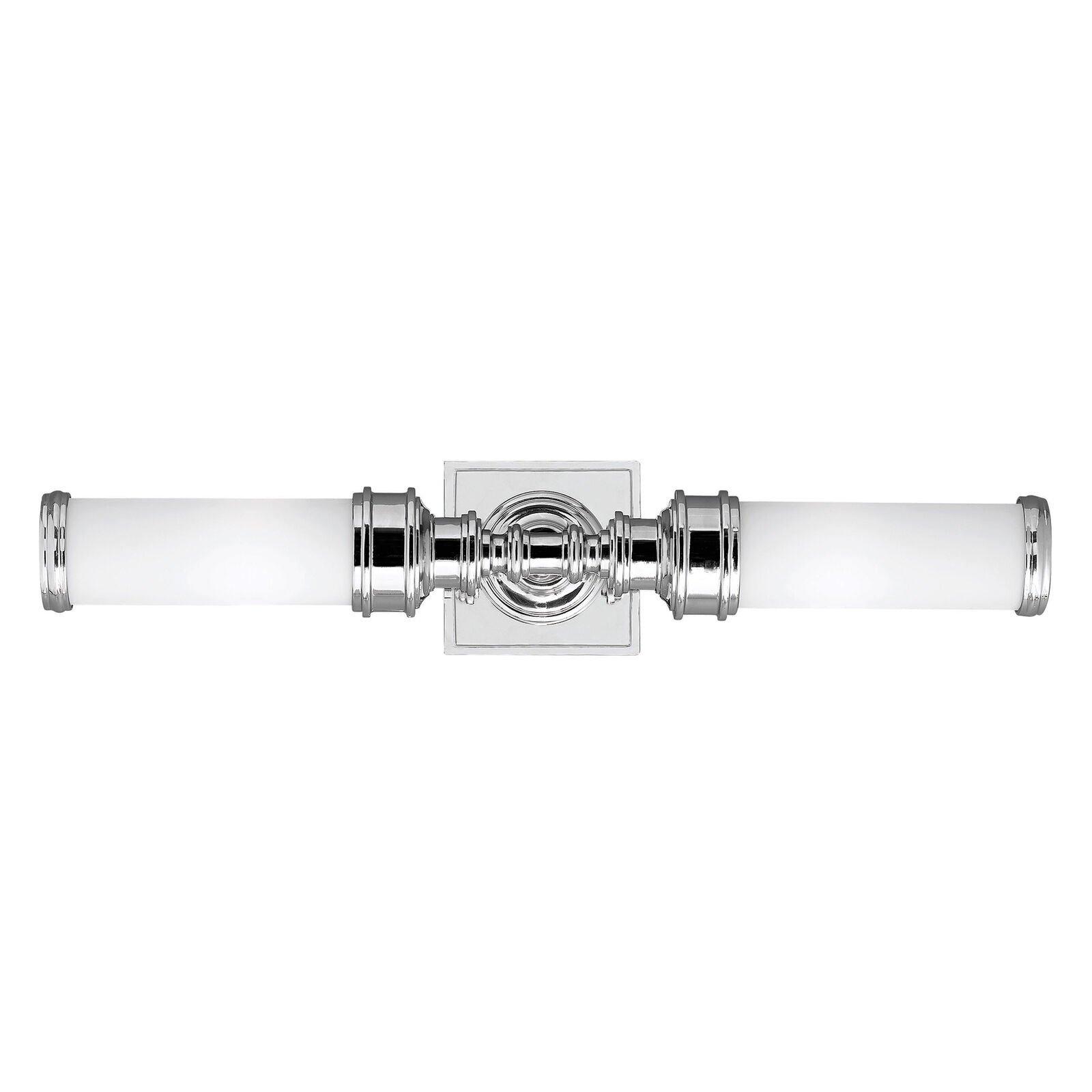 IP44 Twin Wall Light 2 Tube Opaque Glass Shades Polished Chrome LED G9 3.5W