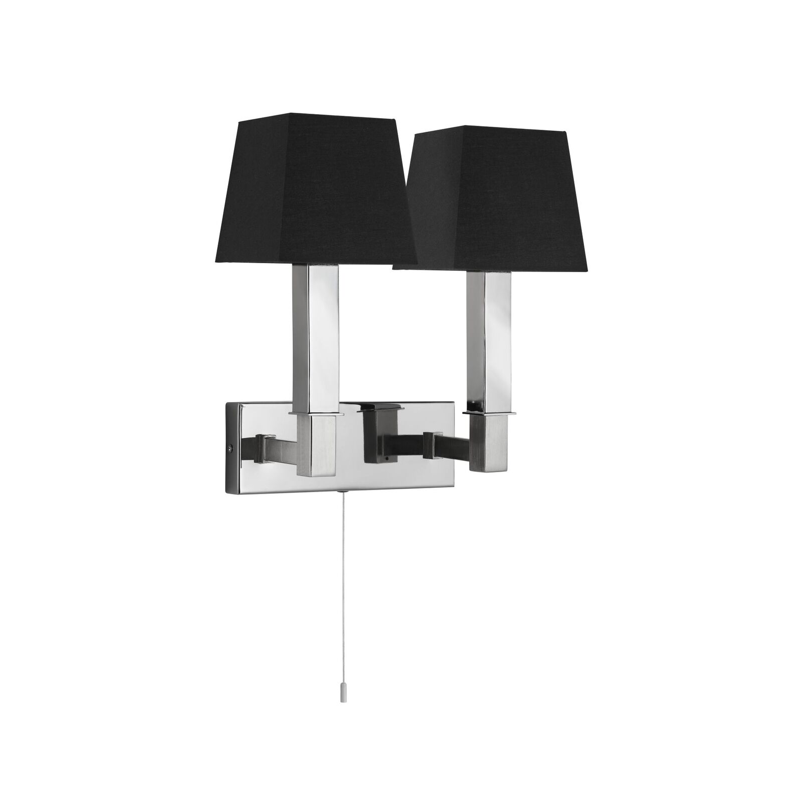 Oksana 2 Light Indoor Twin Candle Wall Light Polished Nickel Plate with Black Shades E14