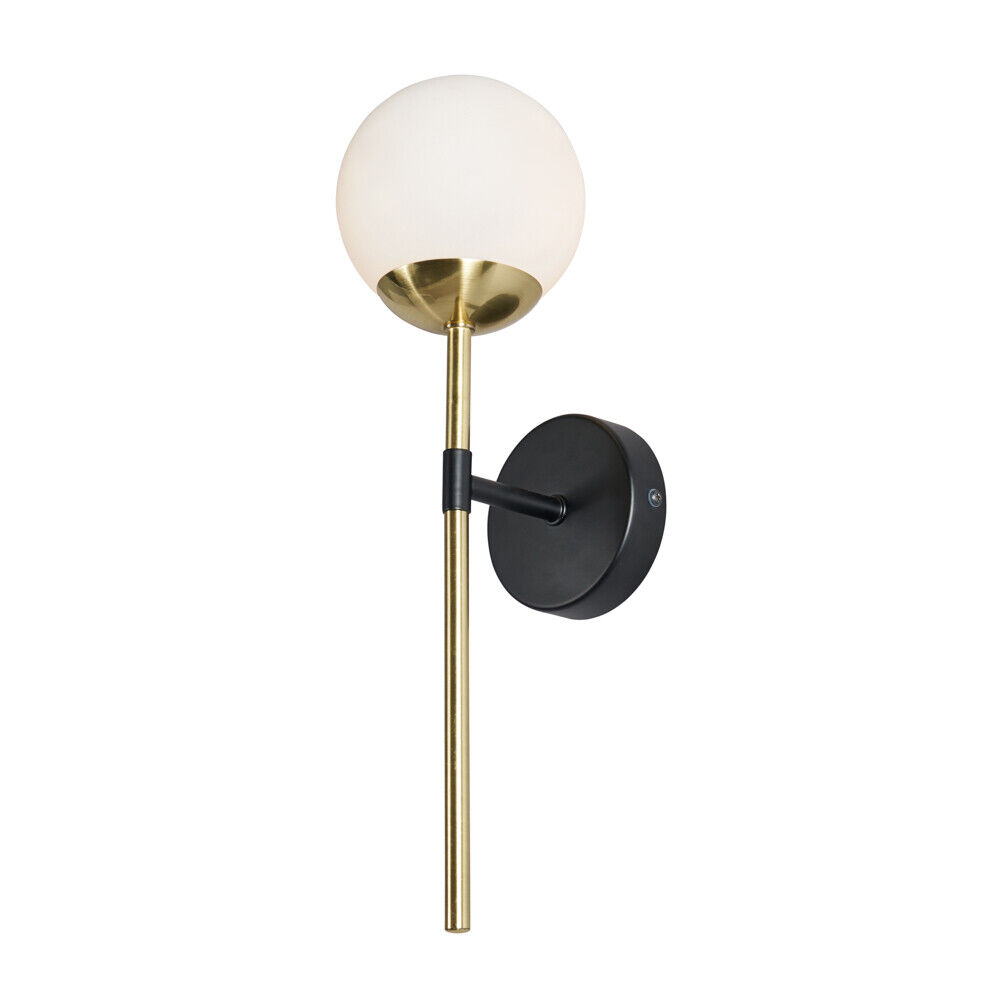 HQHYGM Wall Light Indoor Vintage Wall Lamp with White Globe Glass Shades Wall Decorative Creatively Wall Iron for Bedroom Hallway Living Room (Black Gold 1 Pack)