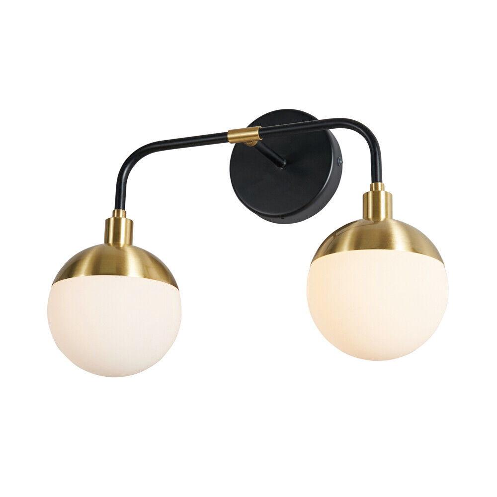 HQHYGM Wall Light Indoor Vintage Wall Lamp with White Globe Glass Shades Wall Decorative Creatively Wall Iron for Bedroom Hallway Living Room (Black Gold 2 Packs)