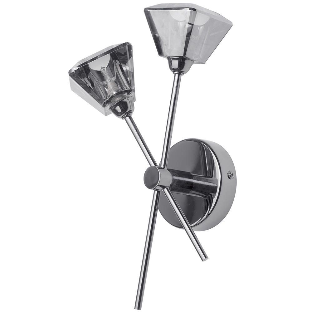 Litecraft Cross Stem Wall Light 2 Arm With Smoke Glass Shades - Black Chrome