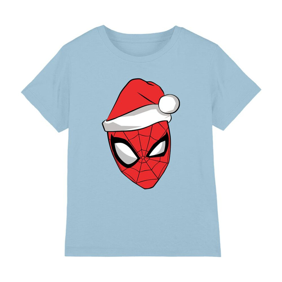 (7-8 Years, Light Blue) Spider-Man Childrens/Kids Santa Hat Christmas T-Shirt