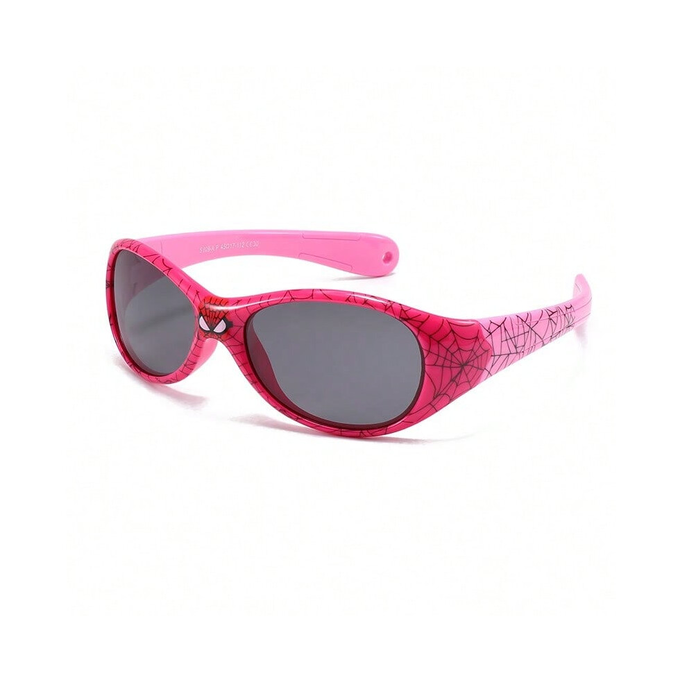 (Rose red frame and pink legs-C30, polarized light) Children's Spider-Man Sports Sunglasses Kids Silicone Polarized Outdoor Cycling Cartoon Sunglasses