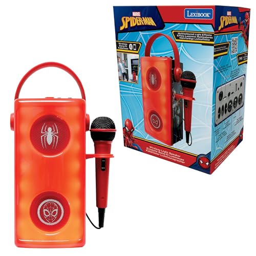 LEXIBOOK, Spider-Man Microphone with Light Tube, Speaker, Melodies, and Sound Effects, MIC90SP