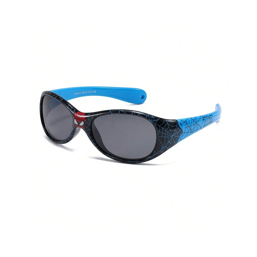 (Sky blue frame and blue legs-C29, polarized light) Children's Spider-Man Sports Sunglasses Kids Silicone Polarized Outdoor Cycling Cartoon Sunglasses