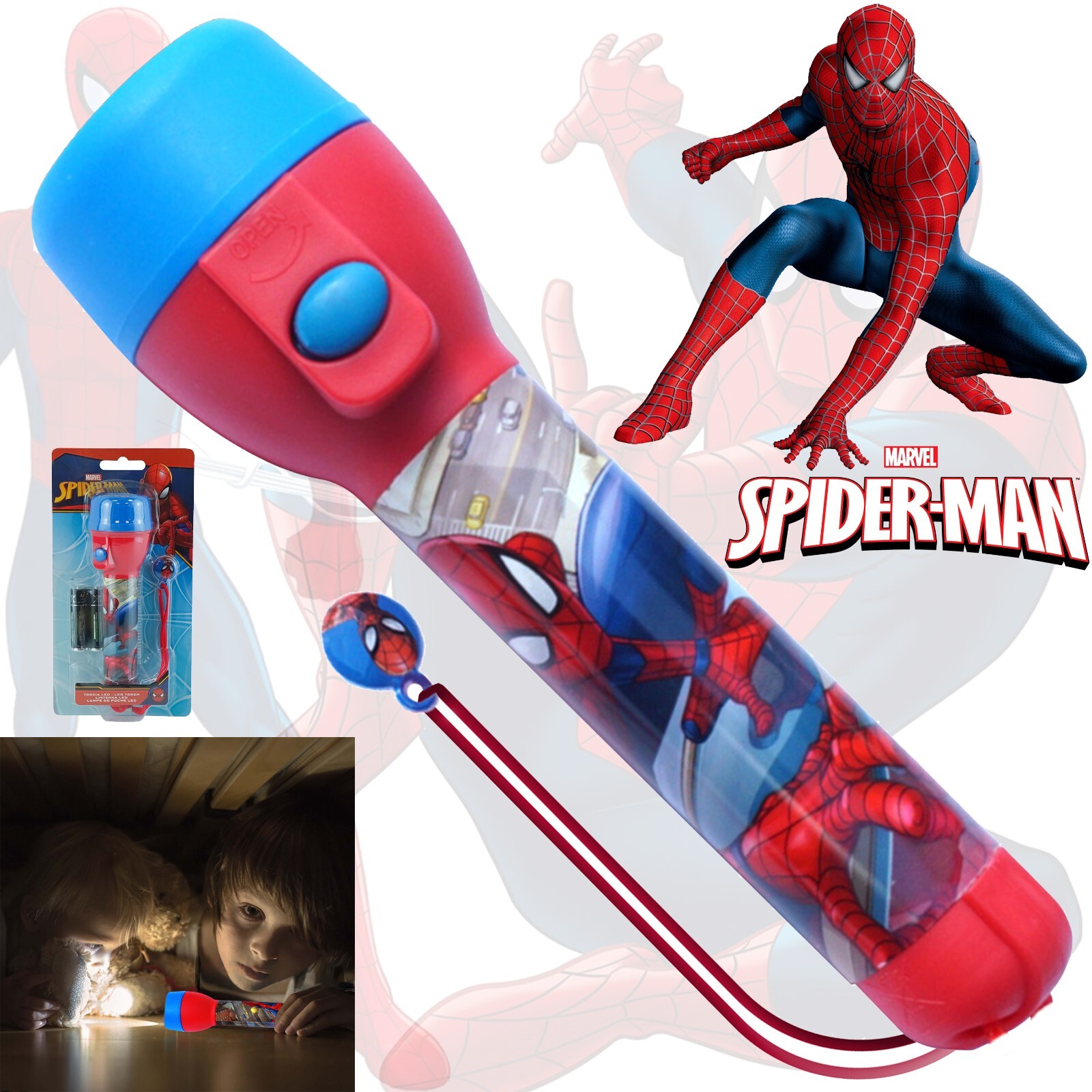 Spider-Man LED Flashlight Torch, Kids 16cm Superhero Camping Light, Night Light