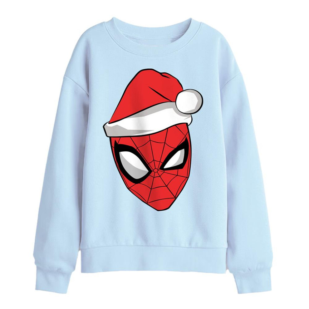 (7-8 Years, Light Blue) Spider-Man Childrens/Kids Santa Hat Christmas Sweatshirt