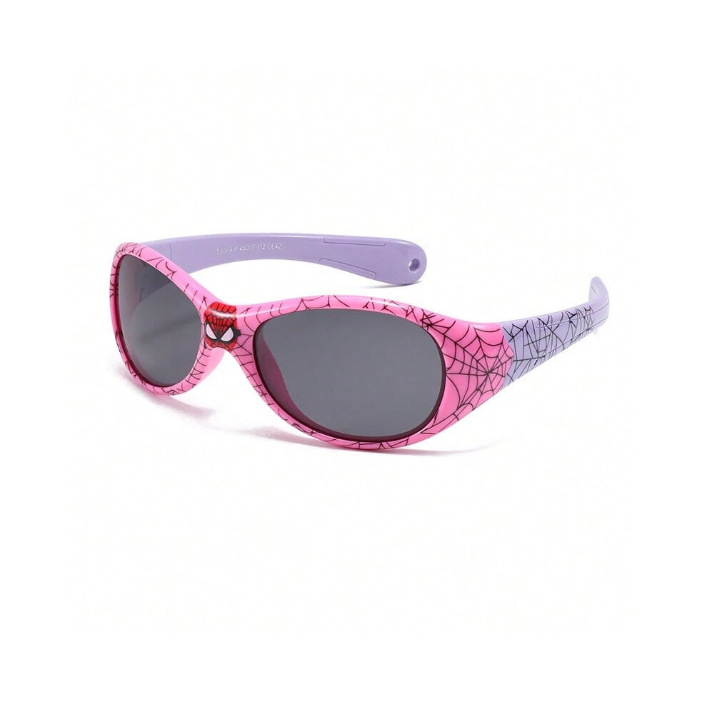 (Pink frame and purple legs-C42, polarized light) Children's Spider-Man Sports Sunglasses Kids Silicone Polarized Outdoor Cycling Cartoon Sunglasses