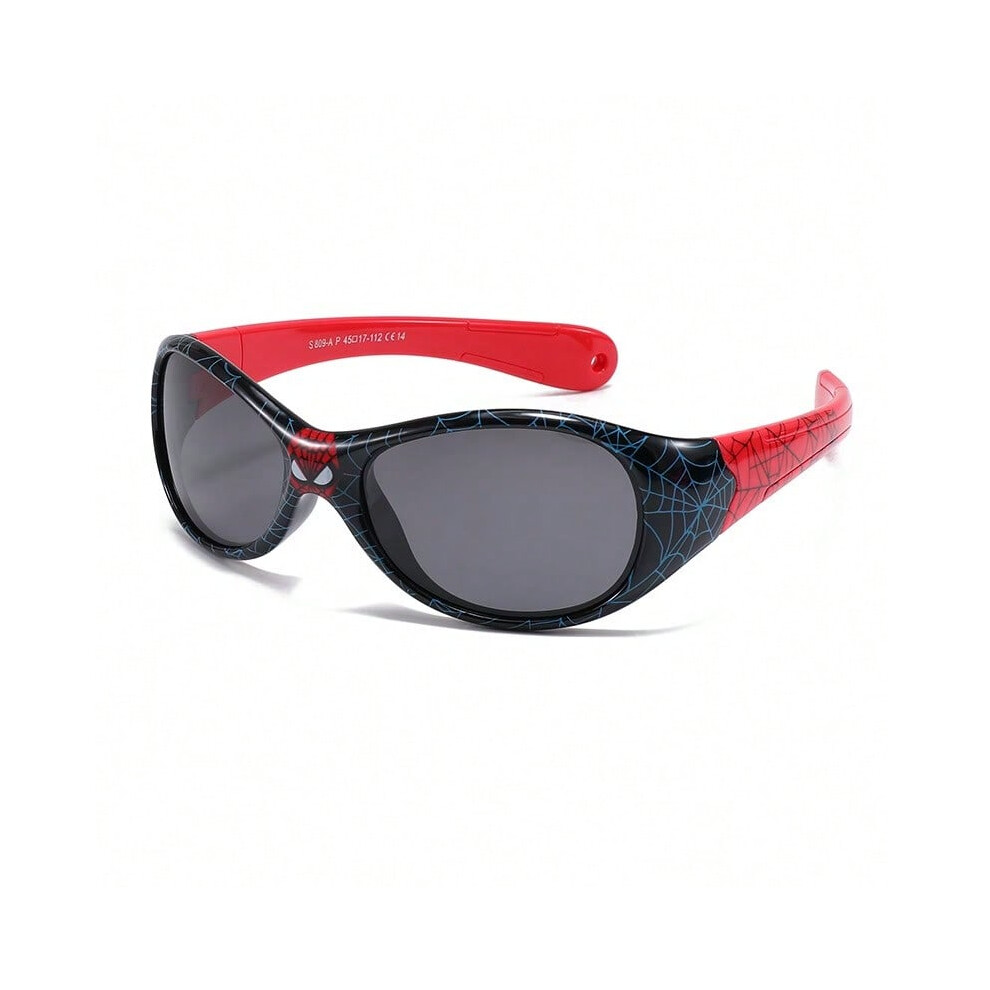 (Red frame and black legs-C40, polarized light) Children's Spider-Man Sports Sunglasses Kids Silicone Polarized Outdoor Cycling Cartoon Sunglasses