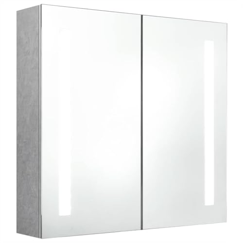 vidaXL LED Bathroom Mirror Cabinet in Smooth Concrete Grey Finish with Dual Light Strips, Quality MDF Board with Melamine, Storage with 3 Shelves, Wall Mounted