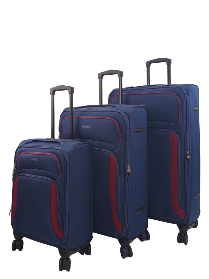 Infinity Leather Unisex Soft 8 Wheel Luggage Light Travel Suitcases - Navy Nylon - Size Small