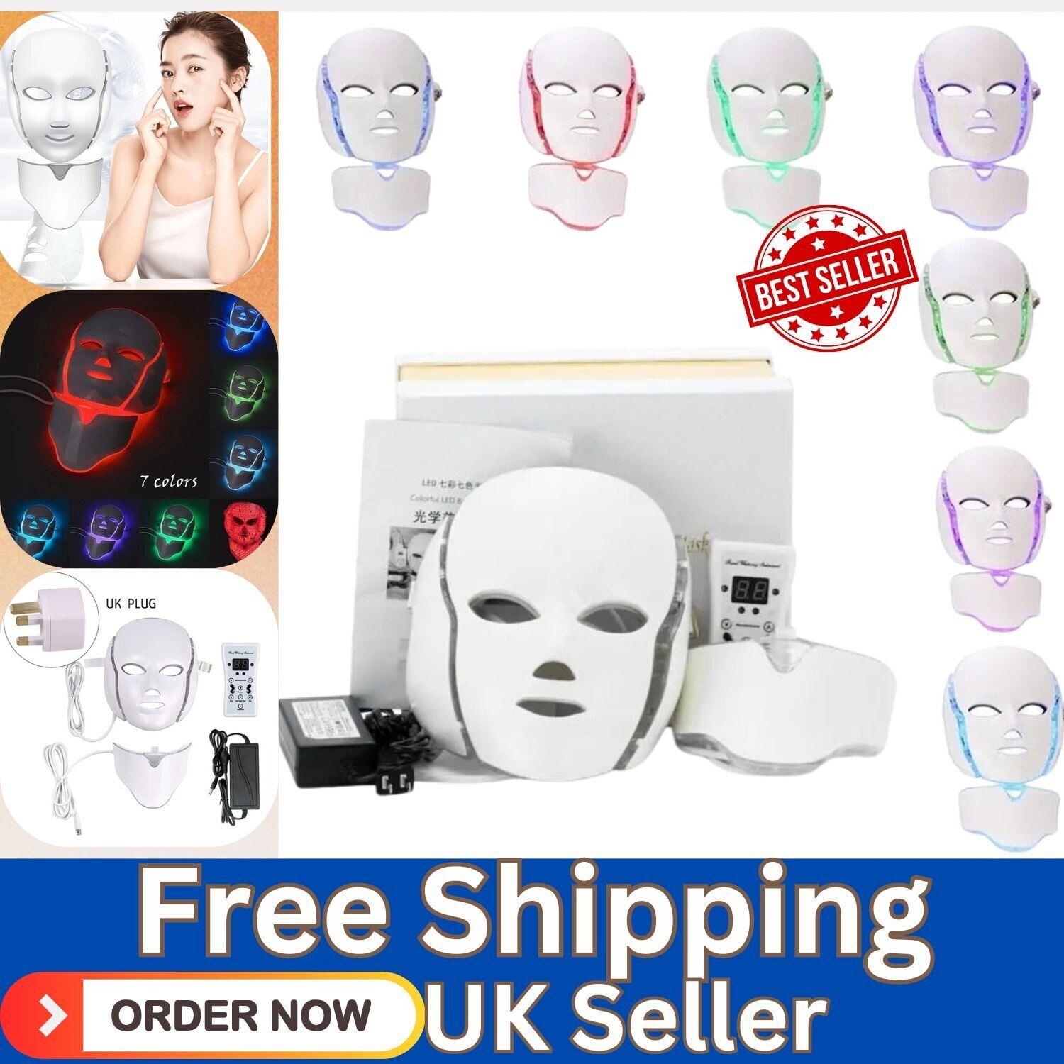 7 Colors LED Light Photon Therapy Face Neck Mask For Facial Skin Care Wrinkles