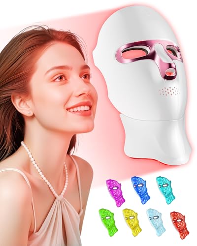 Mlriyl LED Face Mask, 7 Colour Red Light Therapy Mask, LED Photon Facial Skin Care Device for Anti Aging, Wrinkle Reduction, Acne Treatment, Rejuvenation & Hydration, Gifts for Women/Men