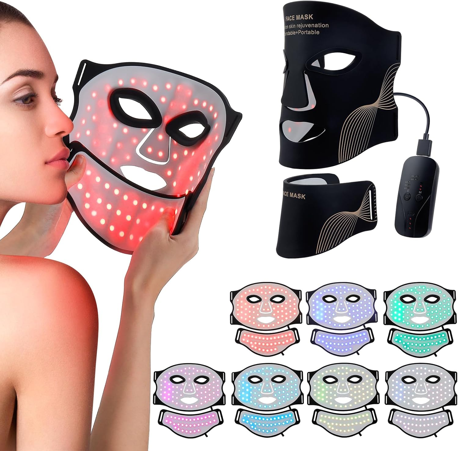 Cordless Beauty Face and Neck Mask, 7 Colors Led Light Therapy Mask with 360Pcs