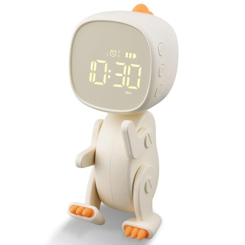 Kdouehg Children'S Digital Alarm Clock, Three Alarms, Dinosaur Alarm Clock with Variable Shape, Snooze, Night Light Timer Beige