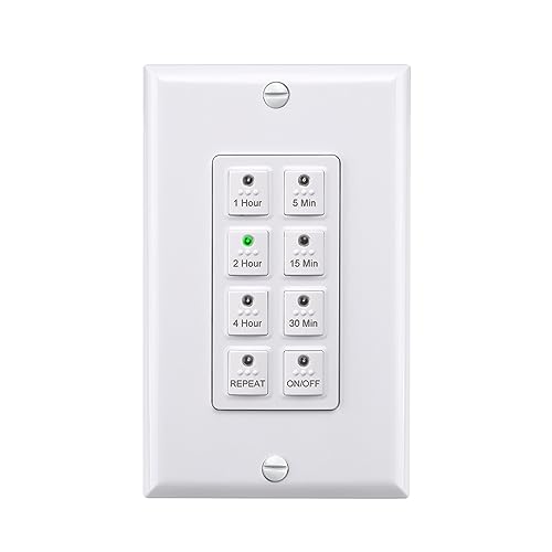 BN-LINK Countdown Digital Wall Timer with Push Button 5-15-30-60 Minutes 2-4 Hours for Bathroom Fan Wall Light Timer Neutral Required Wall Plate White