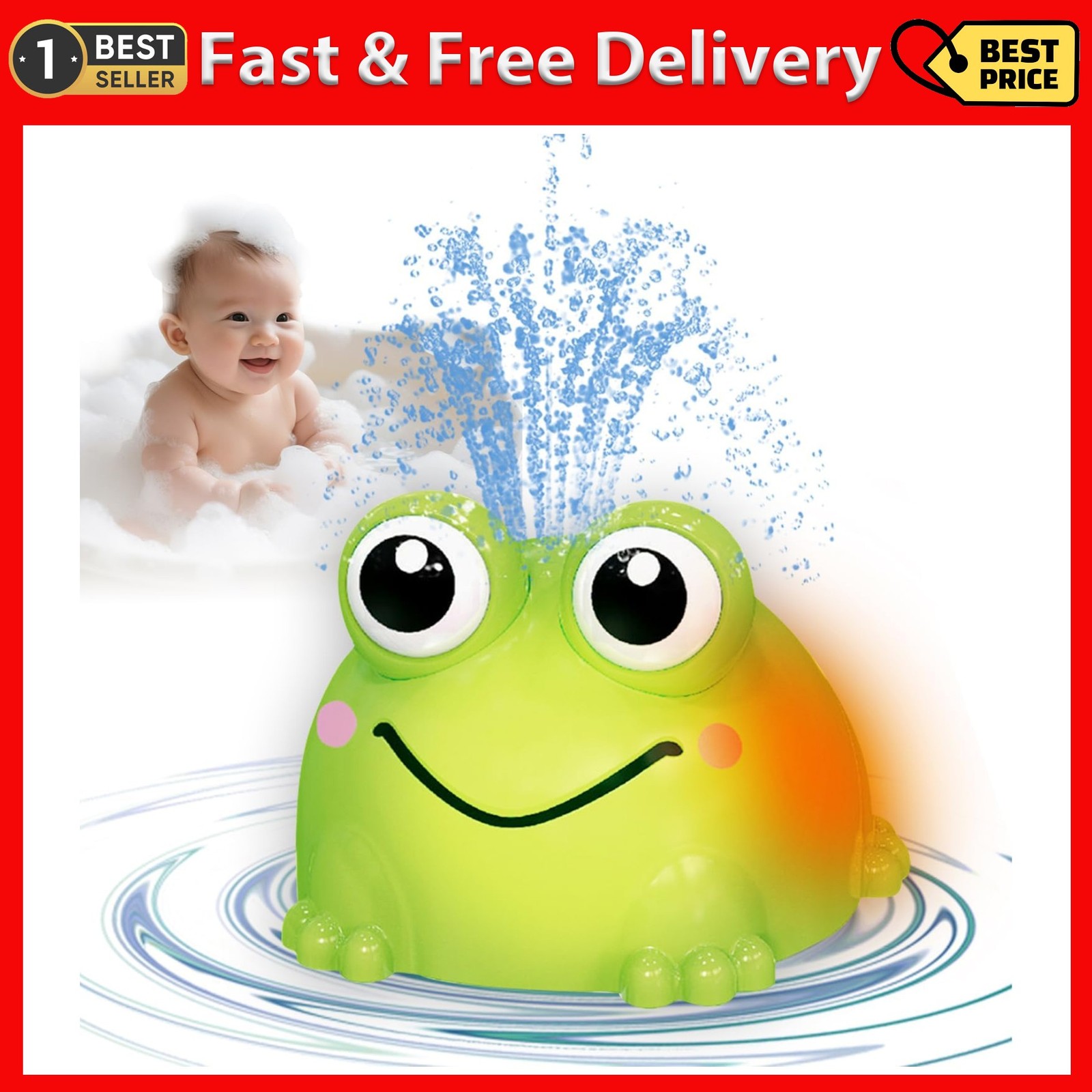 VViN Baby Bath Toys for 1 2 3 Year Old, Sensory Light Up Bath Toys, Frogs Induction Spray Water Toy, Water Play Toys Toddler, Baby Toys for Boys Girls Gifts