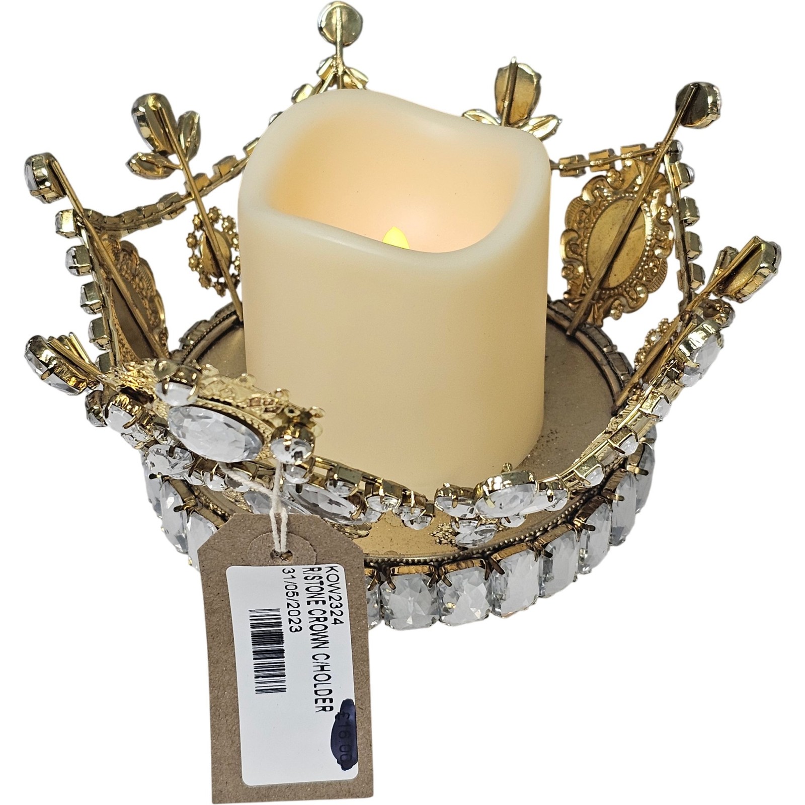AZGA Crown Candle Holder Light Up Gold Crystal Flickering Battery Powered TH