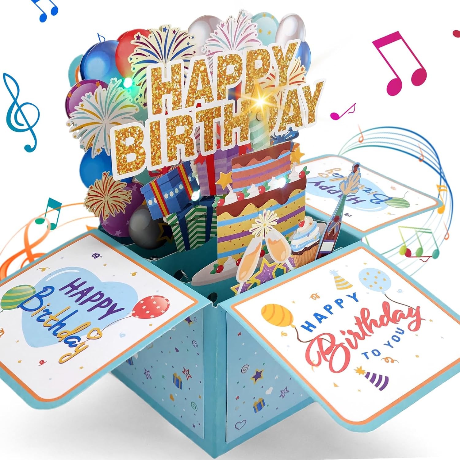 Birthday Card for Men, Boys, Music & Light Up & Blowable Candle Birthday Card,