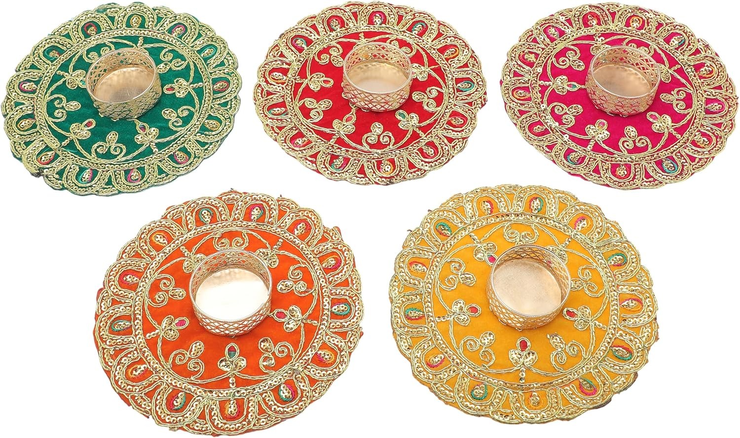 Set of 5 Mat Aasan Rangoli Tea Light Candle Holder T-Light Stand Home Made up o