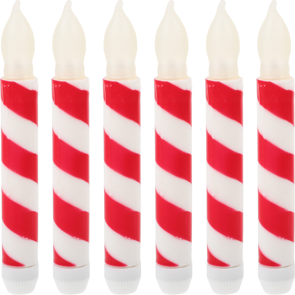 6 Pcs Light up Candle Striped Lollipop Flameless Candles White Led