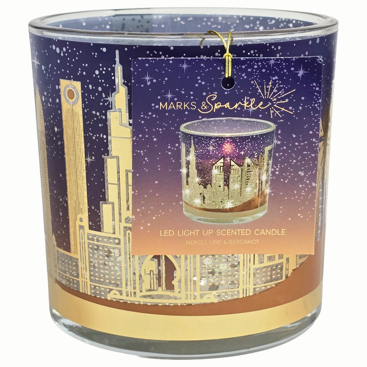 M&S LED Light Up Scented Candle Dubai Skyline, Lime & Bergamot Fragrance Novelty