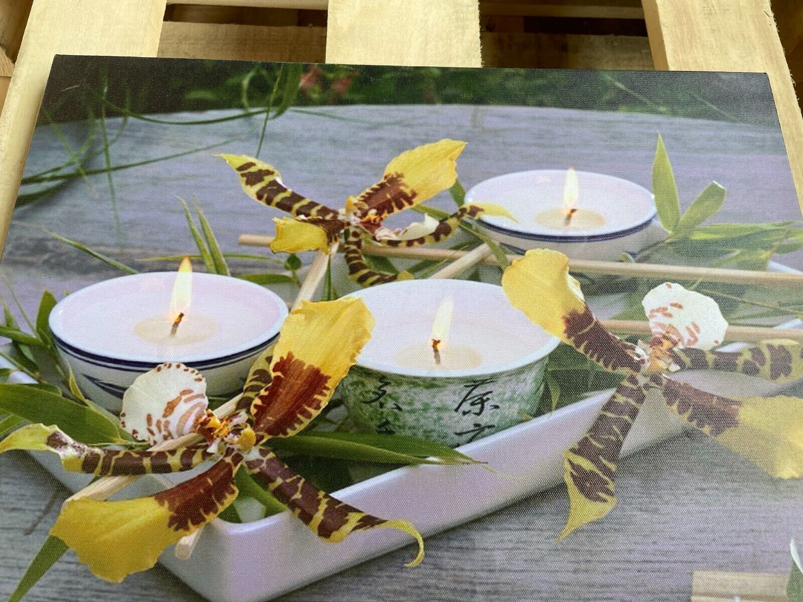 Stylish Relaxing LED Light Up Candle Wall Art Spa Canvas Photo Print 30 x 40cm