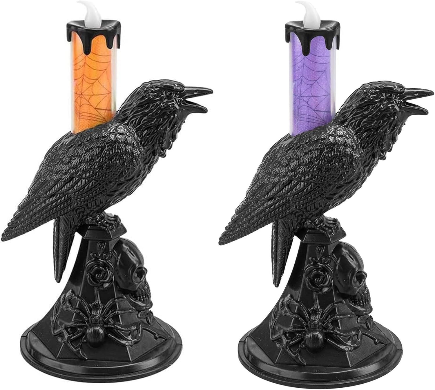 Halloween Black Crow Raven Light Up LED Candle Cobweb Party Table Top Decoration