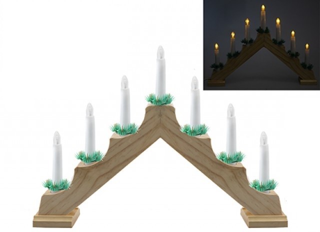 Christmas 7 LED Light Up Pine Wooden Candle Bridge Xmas Decor Battery Op