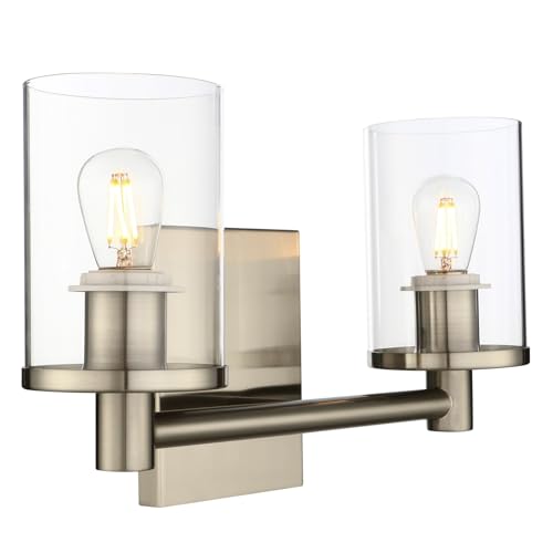 Yosoan 2 Lights Modern Vintage Wall Light, Industrial Vanity Lighting with Glass Lampshade, Double Wall Lamp Indoor Home Lights Fixture, Up Candle Light for Bedroom, Kitchen, Living Room (Brushed)