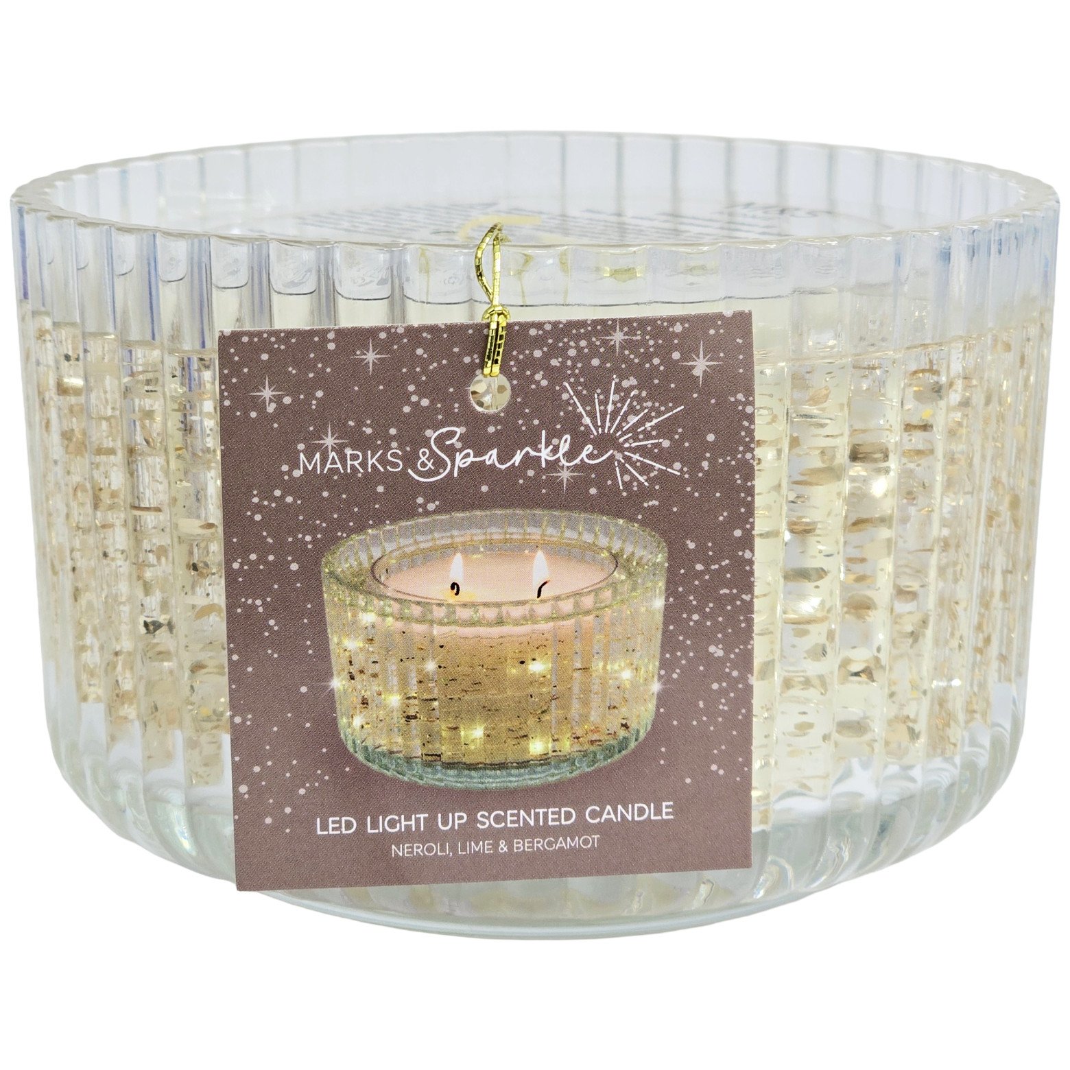 M&S 2 Wick LED Light Up Scented Candle, Neroli, Lime & Bergamot