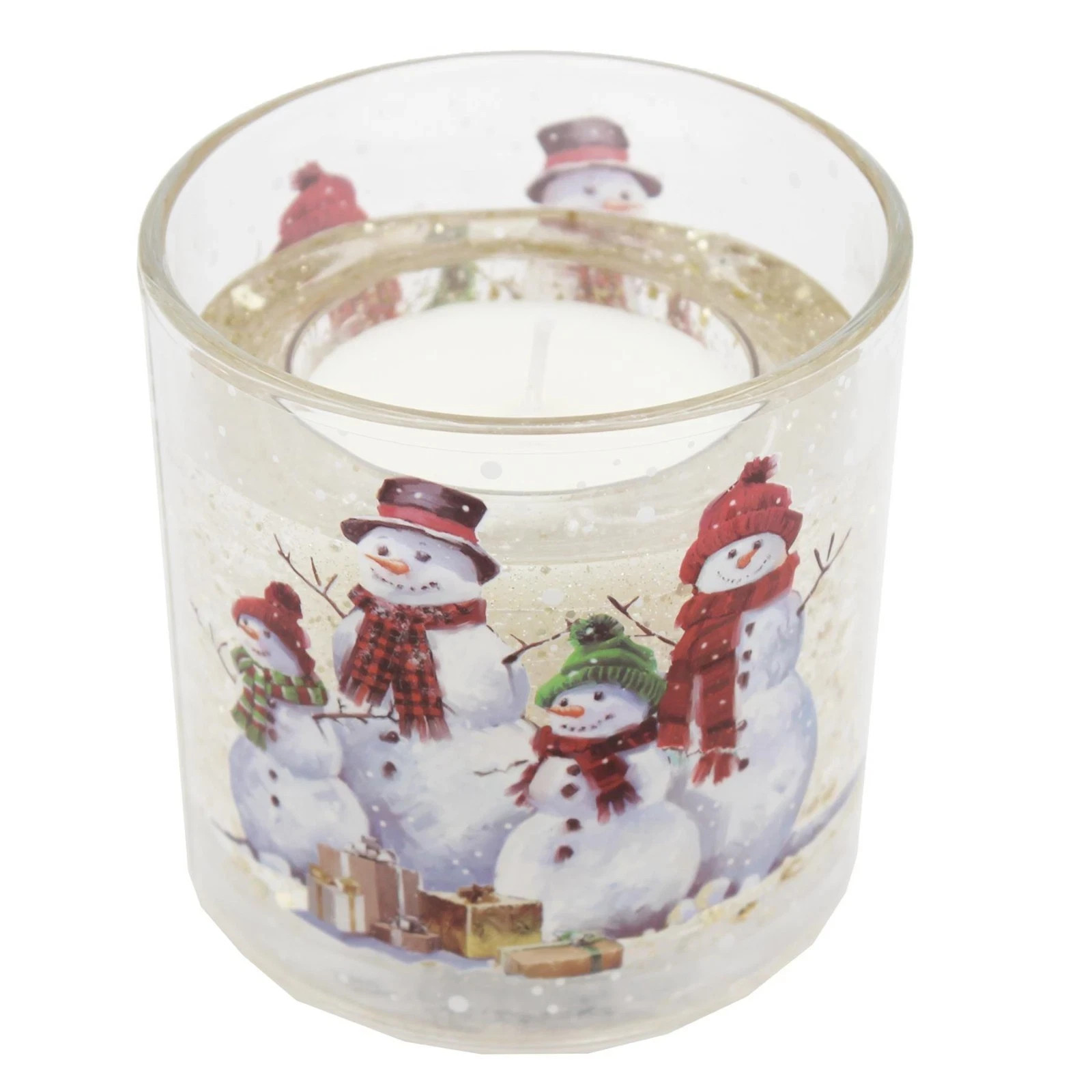 Light Up Scented Candle Christmas Snowmen Gel Led White Moss & Snow Drop Gift