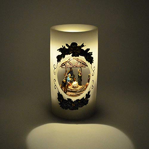 Shatchi 11864A-CHRISTMAS-CANDLE Nativity Christmas Real Wax Candle with Moving Figures Xmas Home Décor Decoration Light UP/Musical Gifts, Multi