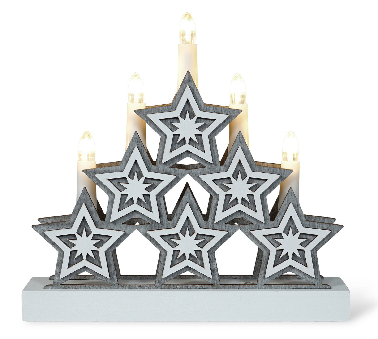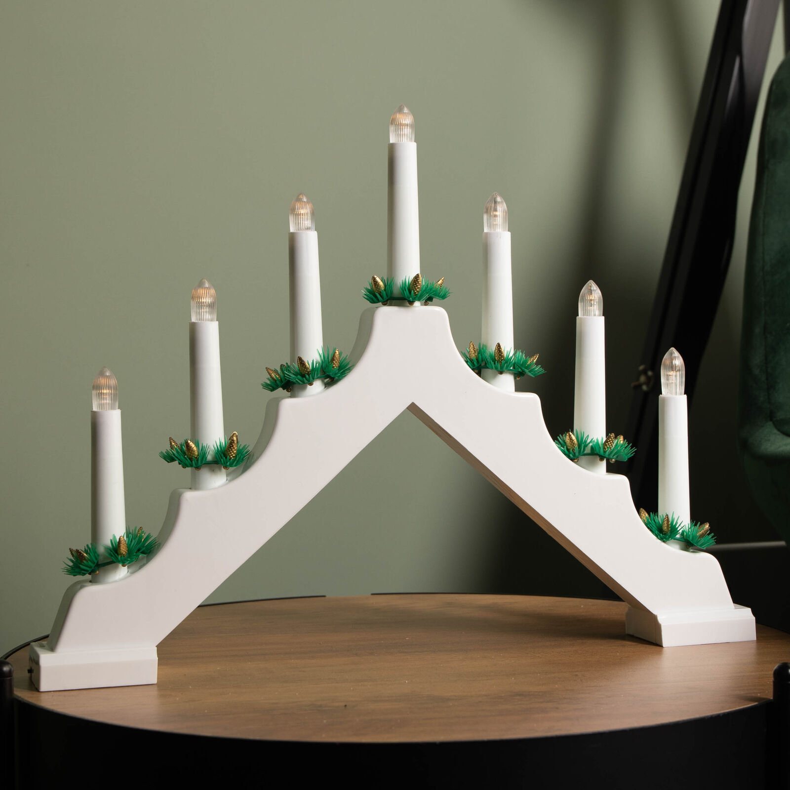 UK-Gardens Light Up White Candle Bridge With 7 Warm White Lights, Battery Operated with Timer 40cm x 33cm - Christmas Indoor Home Decoration