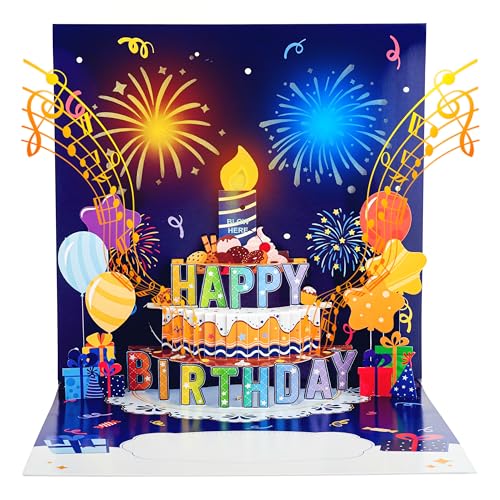 Birthday Card with LED Light Blowable Candle, Large 3D Pop up Birthday Cake Cards, Play Happy Birthday Music with Light, Funny Musical Birthday Gift for Men,Women,Kids,Mom,Wife,Sister,Friends