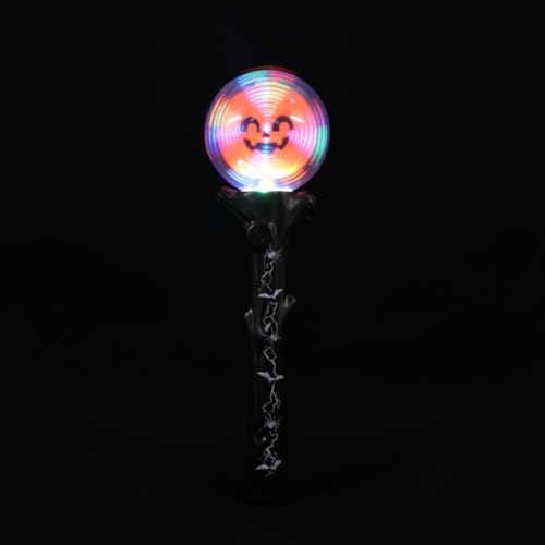 Halloween Pumpkin Globe Spinner, Light Up Sensory Toy with Rainbow Colours, Black Handle with Spooky Design (Green)