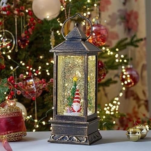 Snow Globe Lantern Decoration - LED Light Up Christmas Lantern, Rotating Glitter Snow Scene Ornament, Festive Holiday Table Display, Battery Operated Decorative Lighting, Design