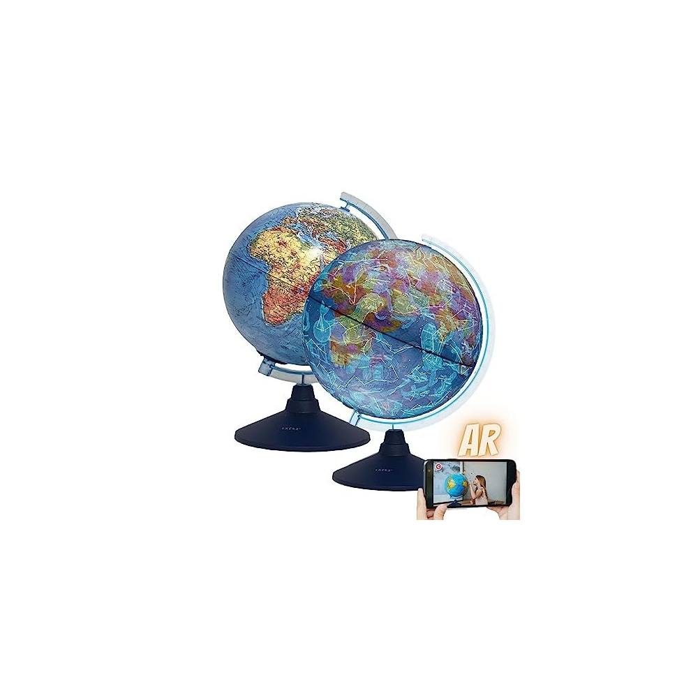 Exerz 25cm AR Globe Illuminated Cable Free LED Light - Physical Map (Day) - Consellation Globe (Night)- Augmented Reality App iOS - Light up globe