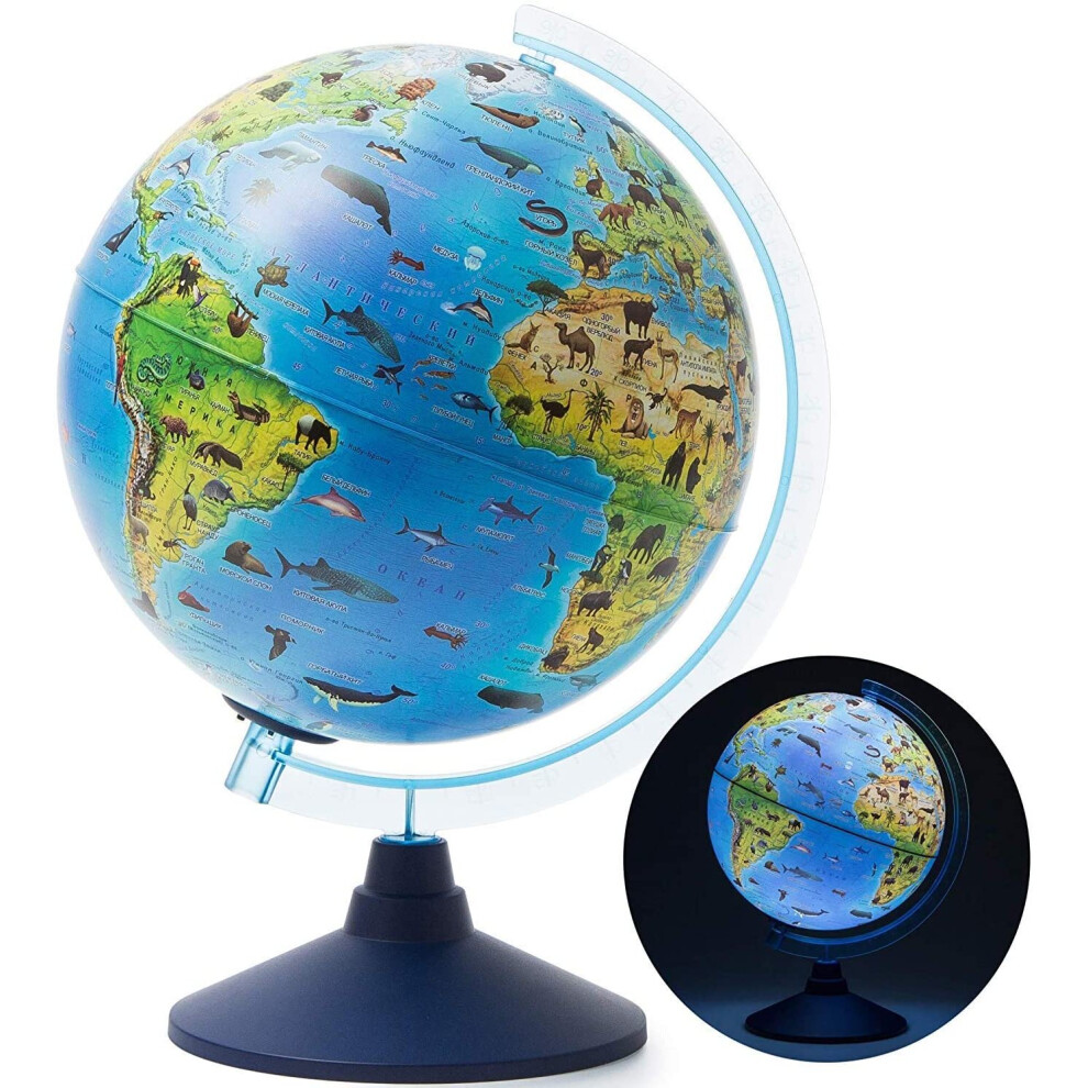 Exerz 25CM Zoo-Geo Illuminated Globe with Cable Free LED Light/ 2 in 1/ Day and Night - English Map - Physical and Zoo Dual Map - Light up globe -